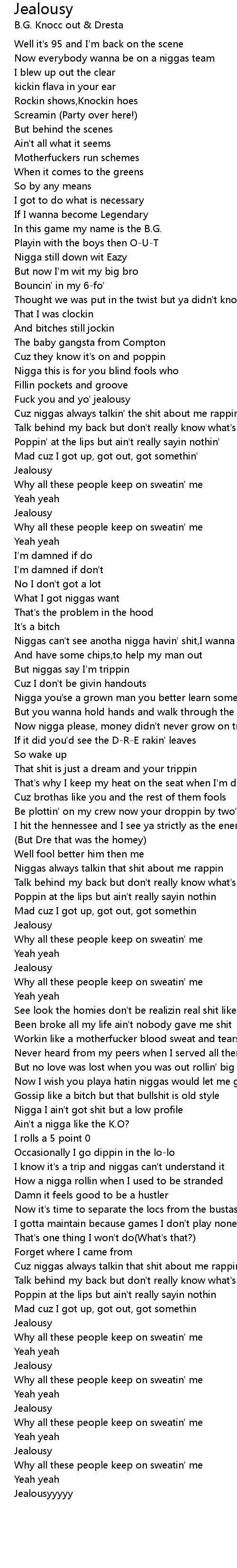 Fuck you and yo' jealousy |
