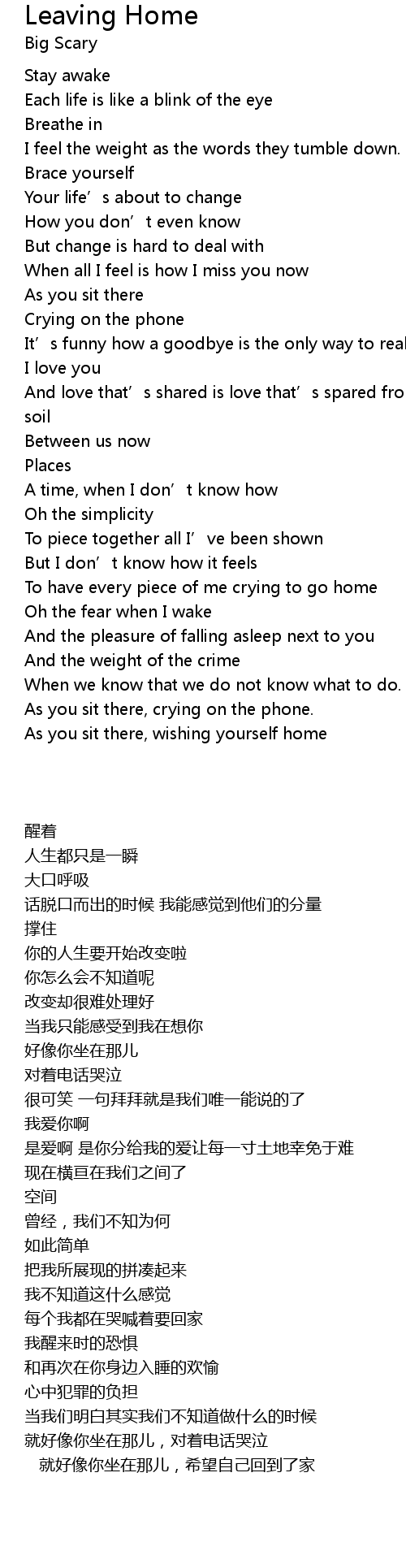 | [02:14.25] | To have every piece of me crying to go home |