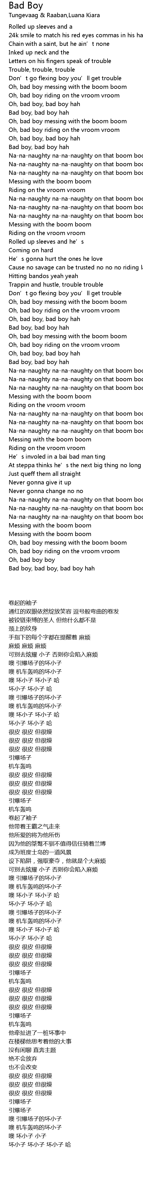 | [00:50.34] | Bad boy, bad boy hah |
