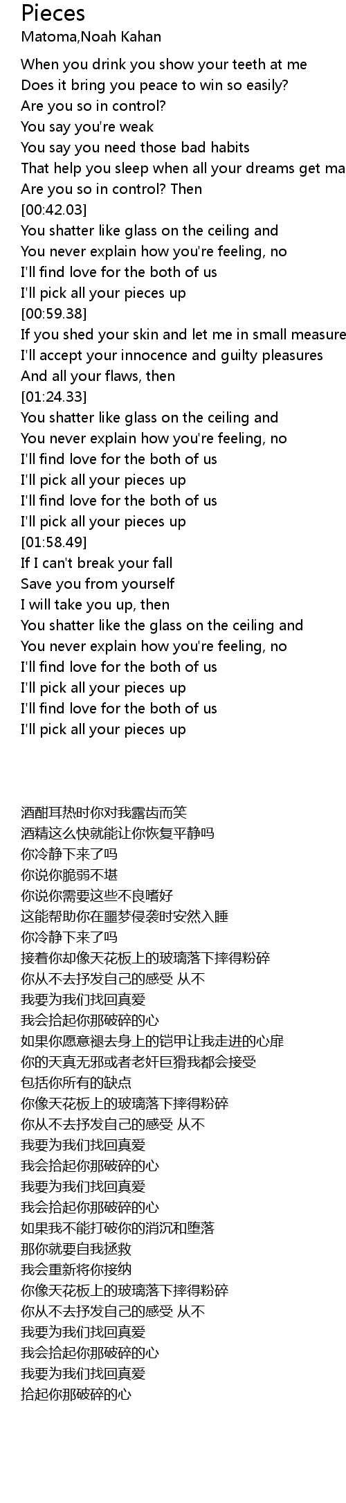 I'll pick all your pieces up |