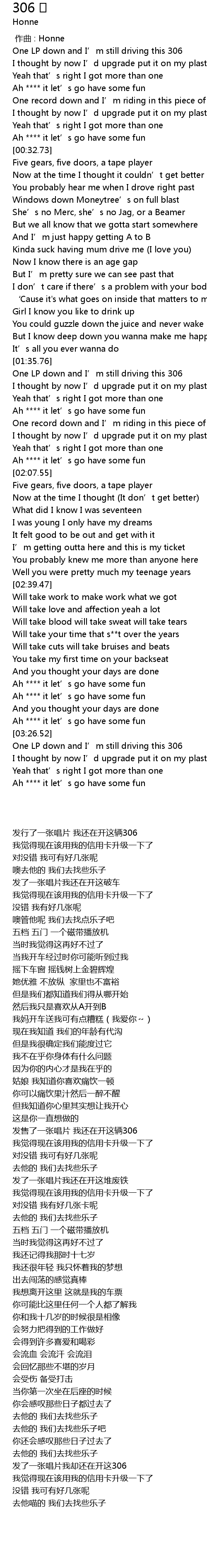 | [00:02.40] | One LP down and I’m still driving this 306 |