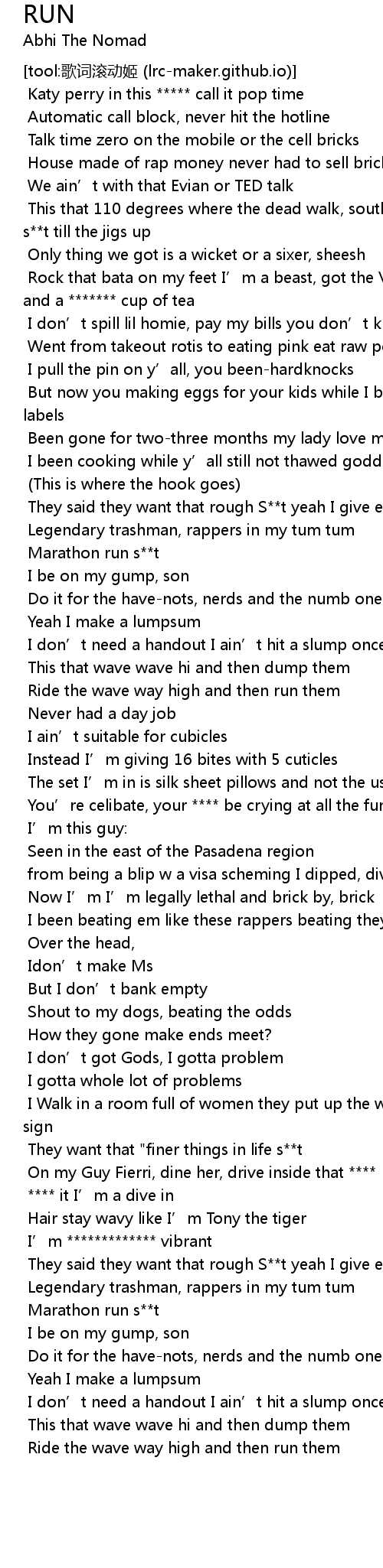 | [00:48.543] | They said they want that rough S**t yeah I give em some son |