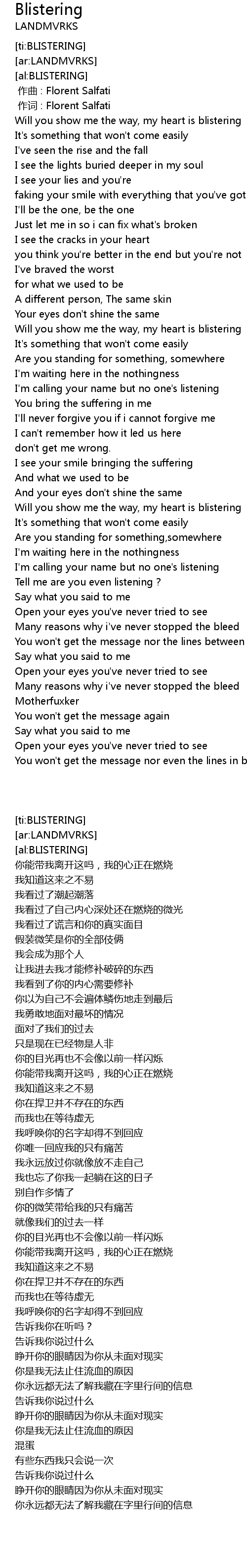 | [02:22.53] | Will you show me the way, my heart is blistering |