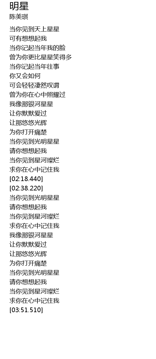| [02:39.650] | 当你见到光明星星 |