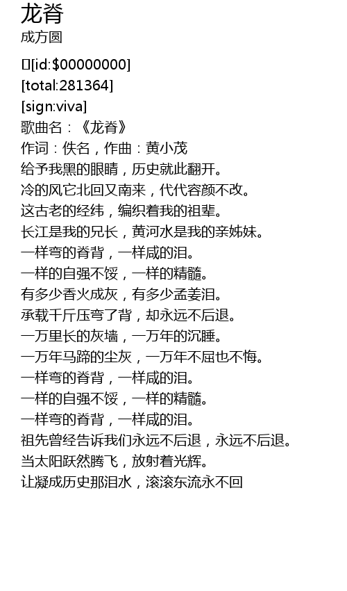 | [00:39.708] | 长江是我的兄长,黄河水是我的亲姊妹。 |