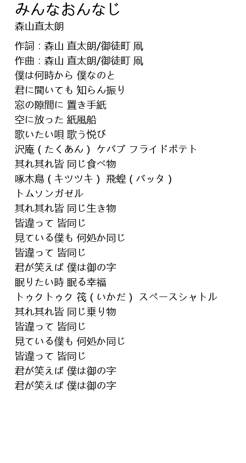 みんなおんなじ 歌词