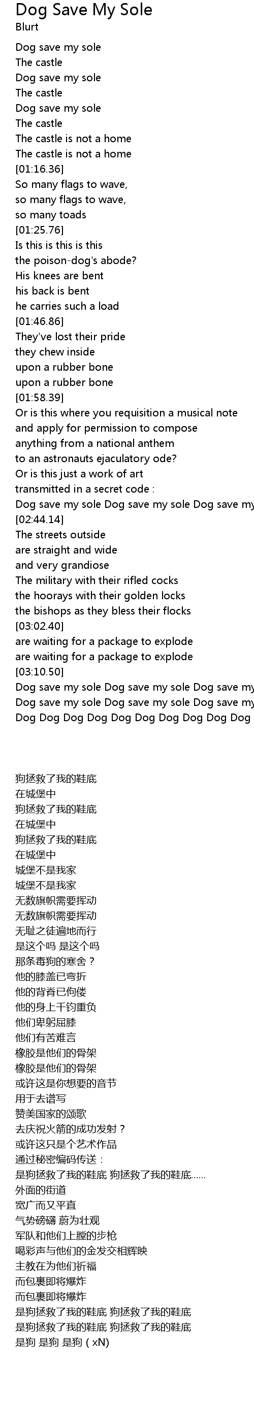 Dog save my sole Dog save my sole Dog save my sole ? |