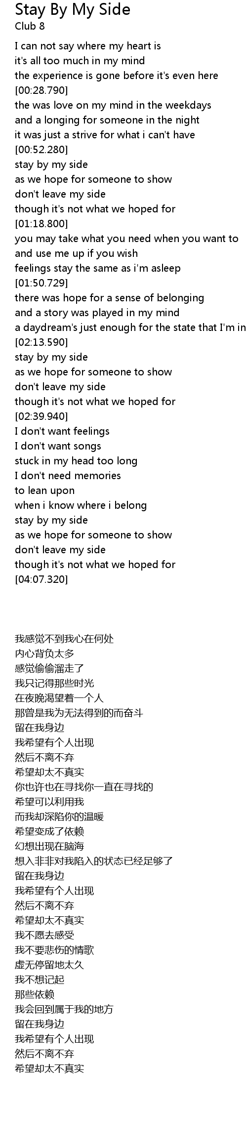 | [03:44.210] | stay by my side |