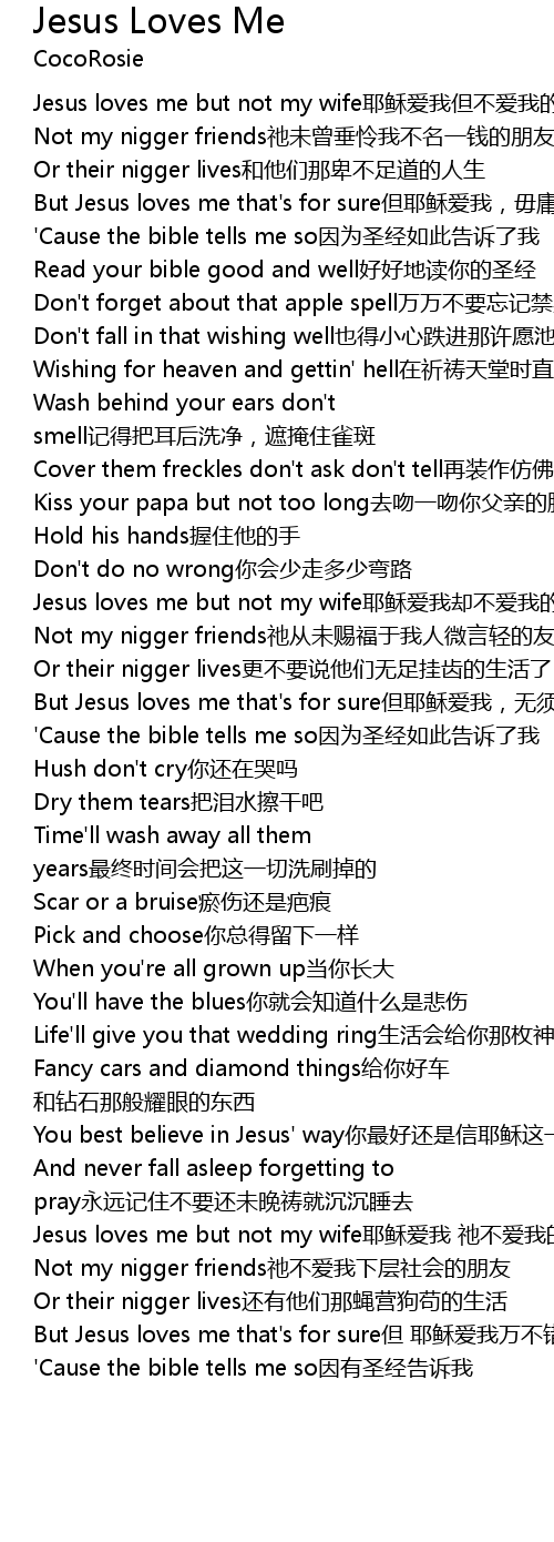 | [02:43.00] | Not my nigger friends祂不爱我下层社会的朋友 |