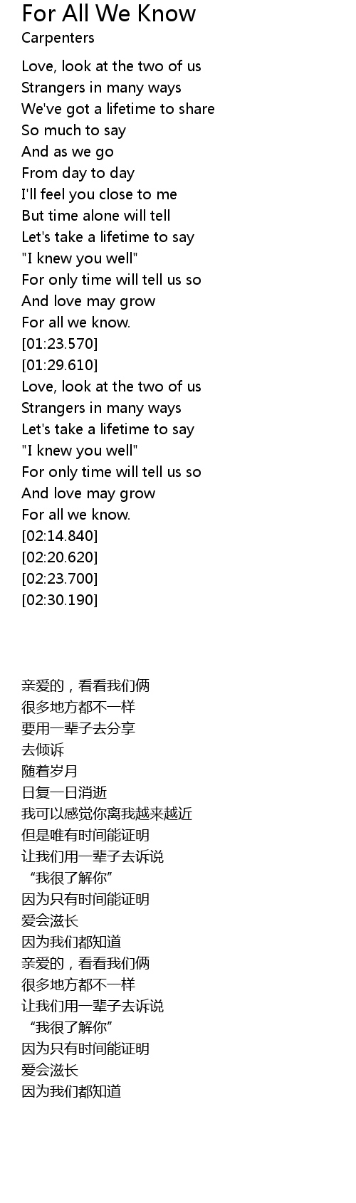 | 歌曲 | For All We Know |