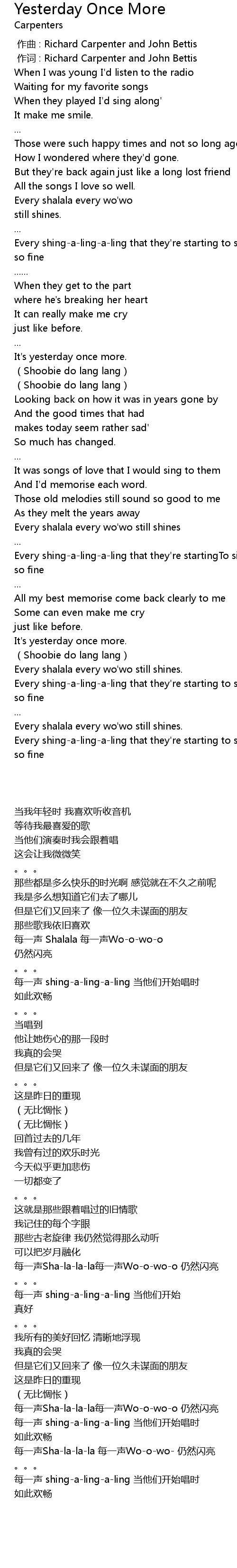 | [00:00.673] | 作词 : Richard Carpenter and John Bettis |