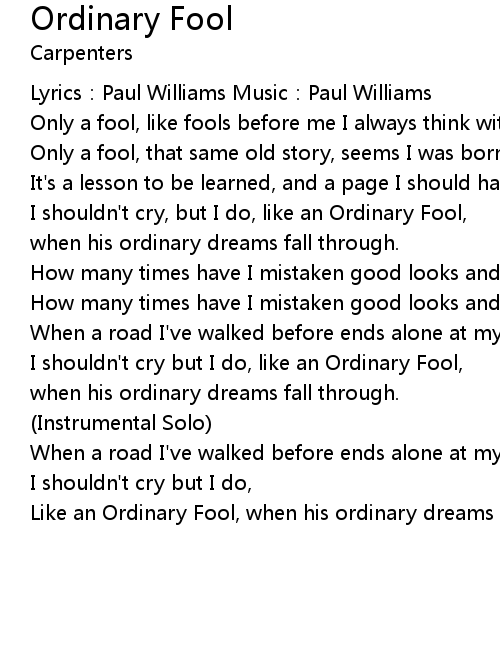 | I shouldn' t cry but I do, like an Ordinary Fool, | |