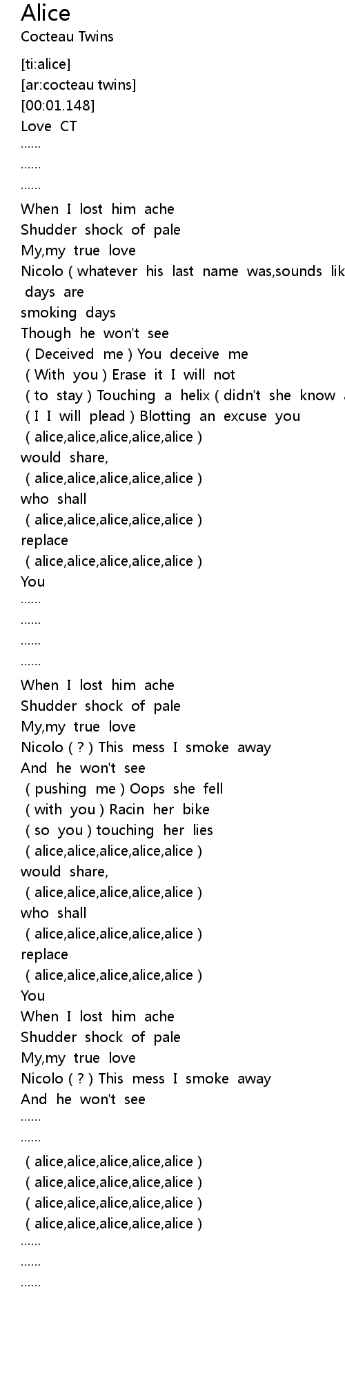 | [02:28.69] | alice, alice, alice, alice, alice |