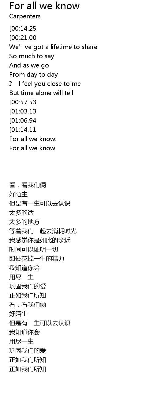 | [01:48.00][00:57.53] | Let' s take a lifetime to say |
