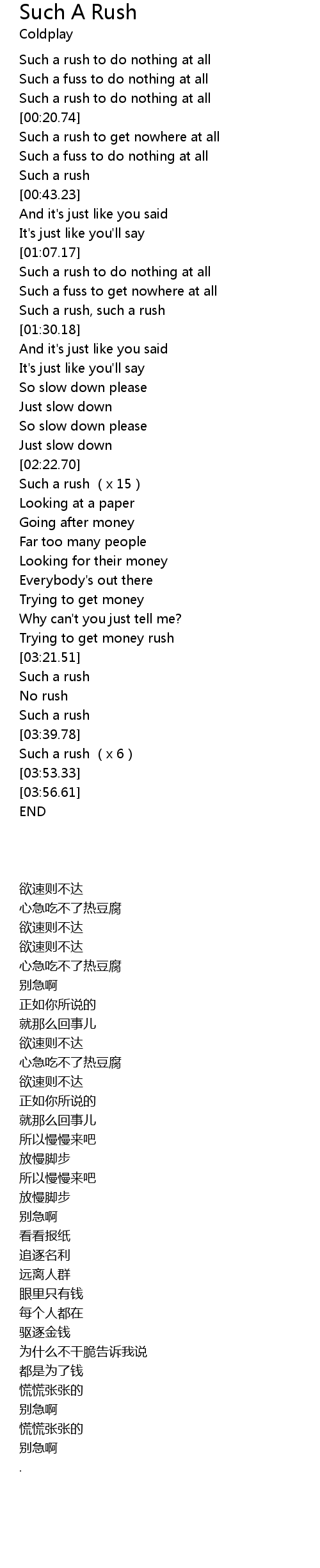 | [02:34.58] | Such a rush (x 15) |