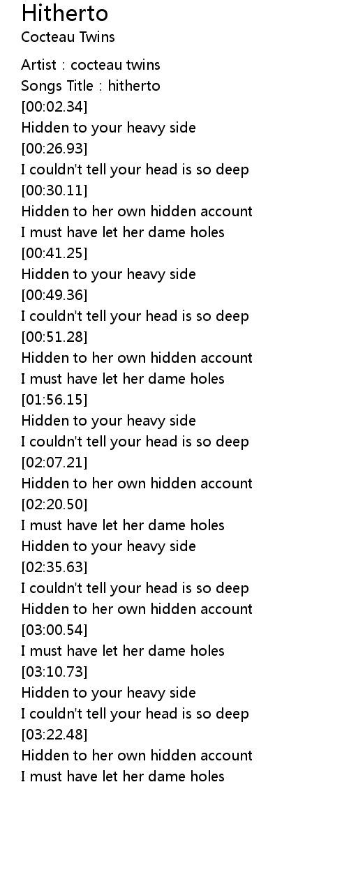 | [00:50.18] | I couldn' t tell your head is so deep |