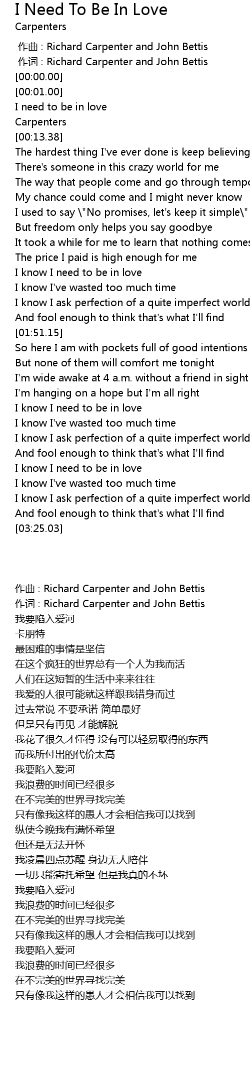 | [02:52.36] | I know I need to be in love |