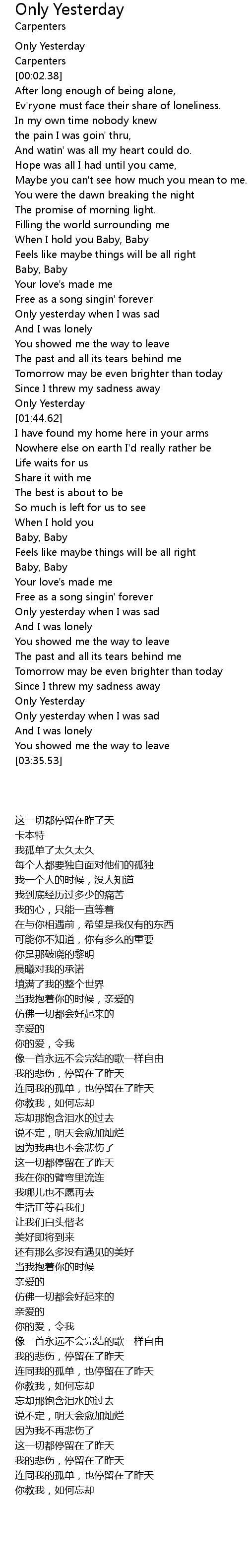 [02:54.47] Only yesterday when I was sad