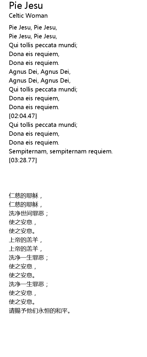 | [00:28.20] | Pie Jesu, Pie Jesu, |