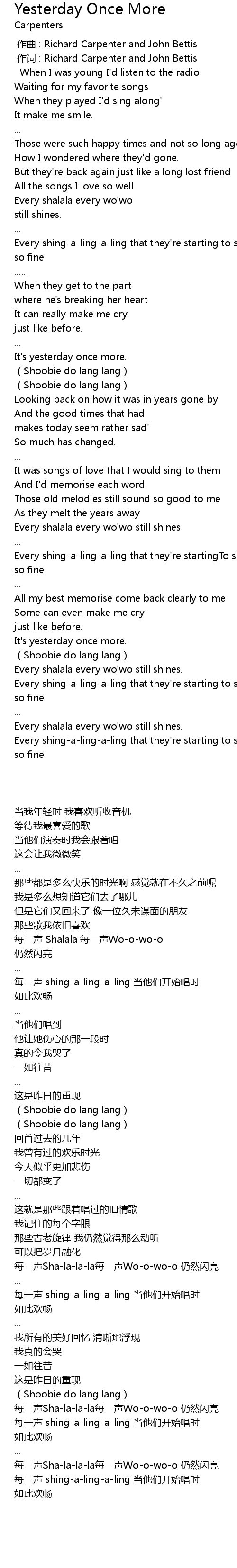 | 歌曲 | Yesterday Once More |