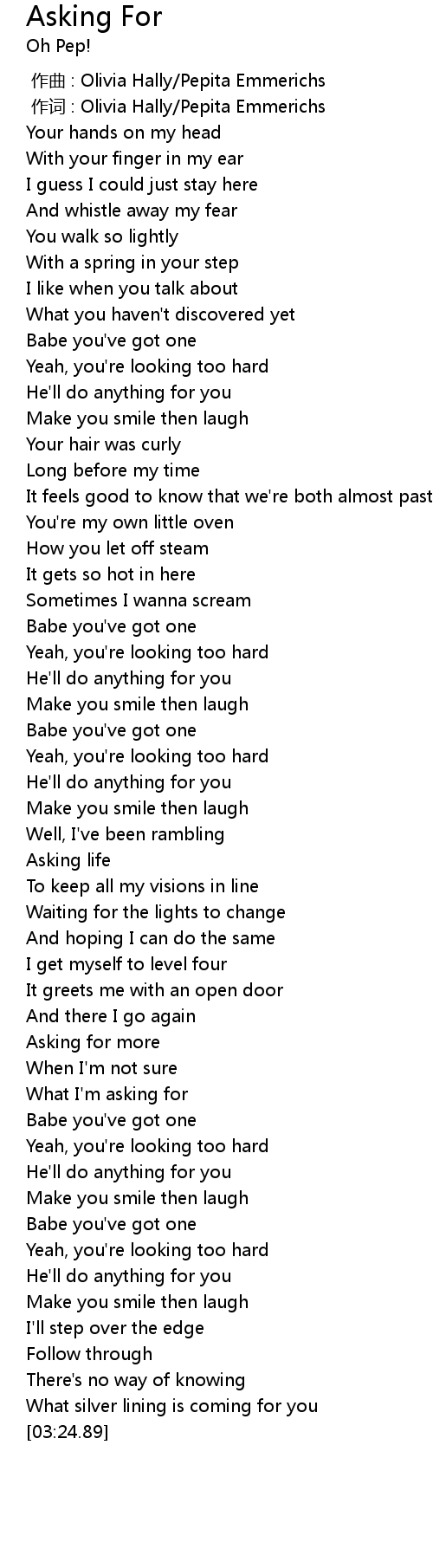 | [00:01.000] | zuò cí : Olivia Hally Pepita Emmerichs |