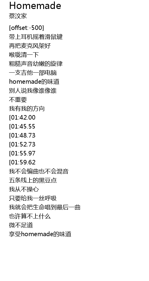| [02:03.44] | 享受homemade的味道 |