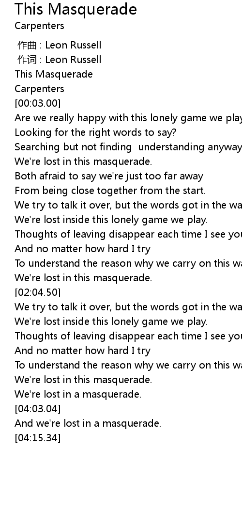 | [00:58.25] | Both afraid to say we' re just too far away |