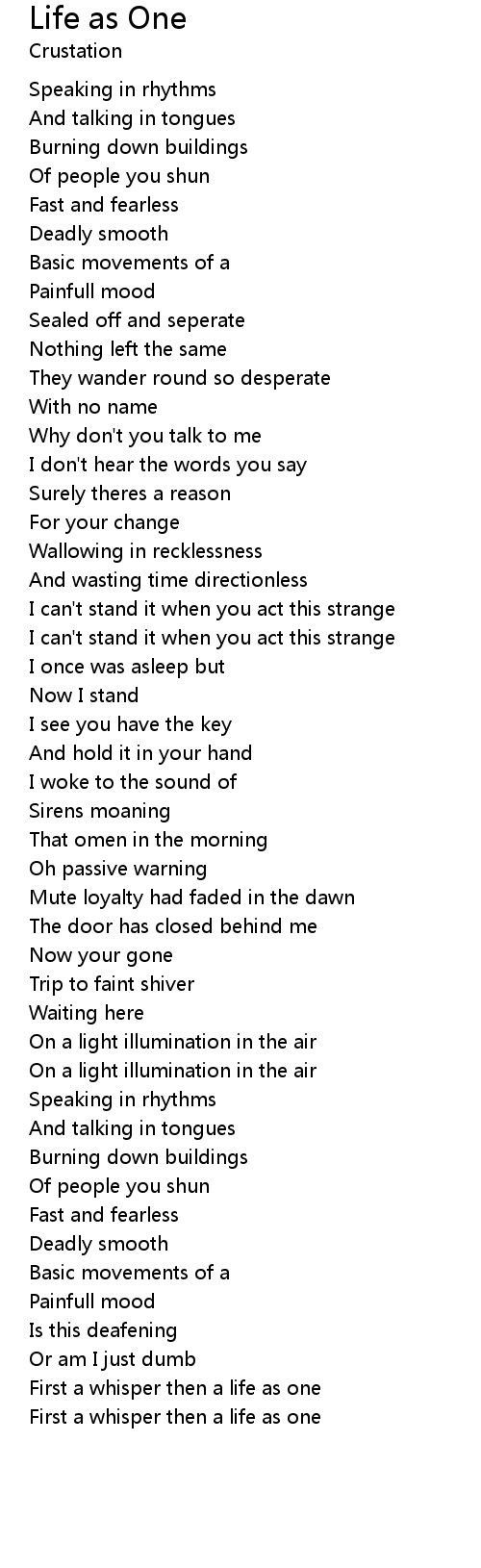 First a whisper then a life as one |