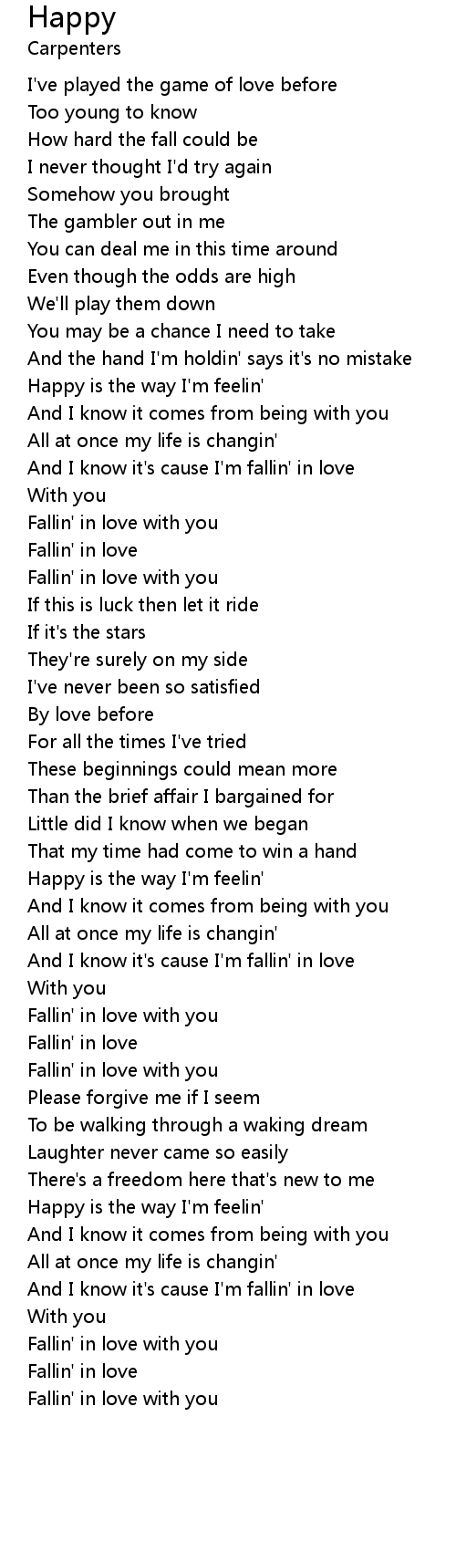 Happy is the way I'm feelin' |
