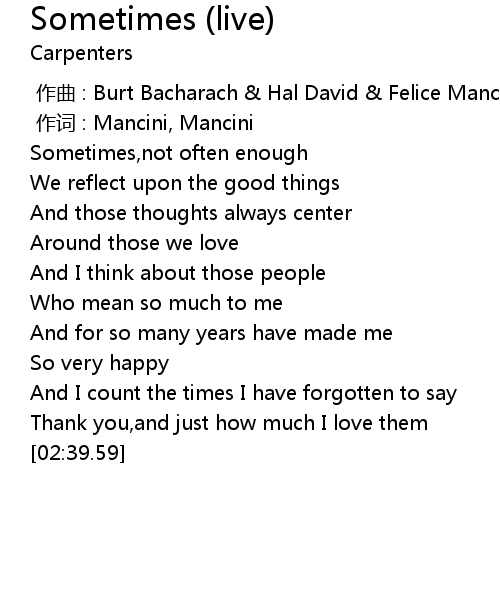 | [00:00.00] | zuo qu : Burt Bacharach Hal David Felice Mancini Henry Mancini |