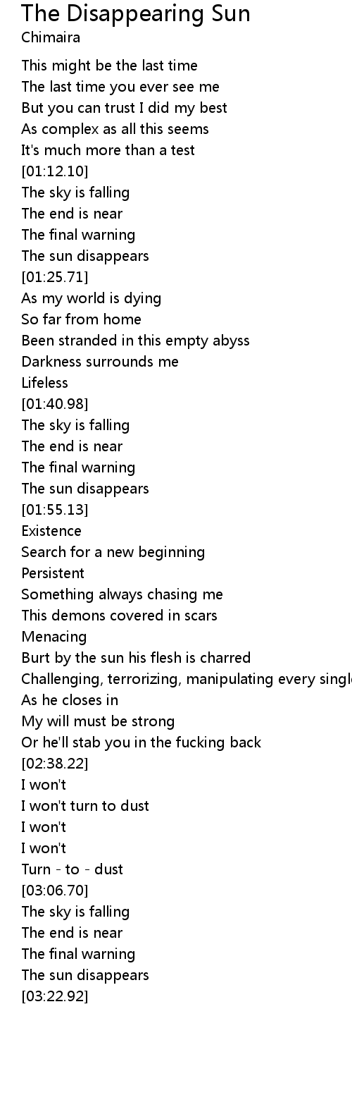 | [02:18.02] | Burt by the sun his flesh is charred |