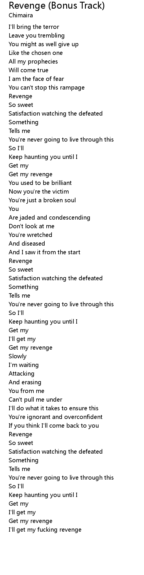 | I'll get my fucking revenge |