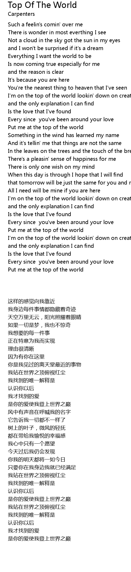 [02:26.690] I'm on the top of the world lookin' down on creation