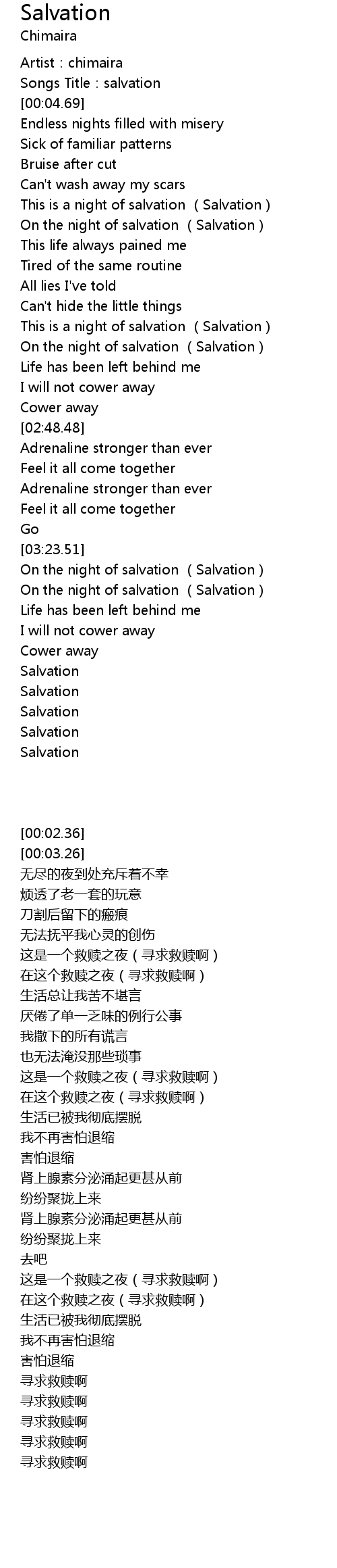 | [00:03.26] | Songs Title: salvation |