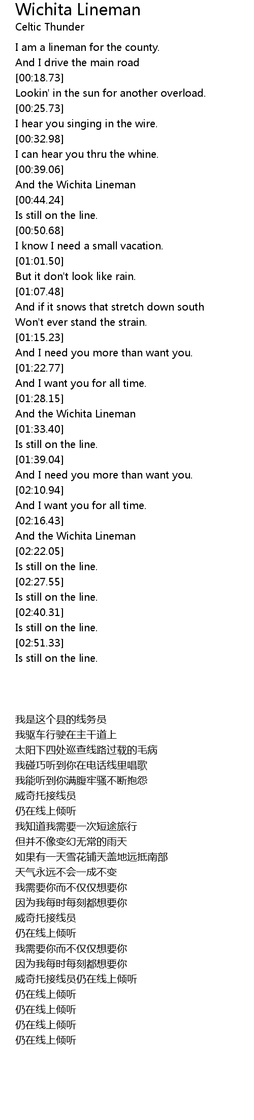 And the Wichita Lineman |