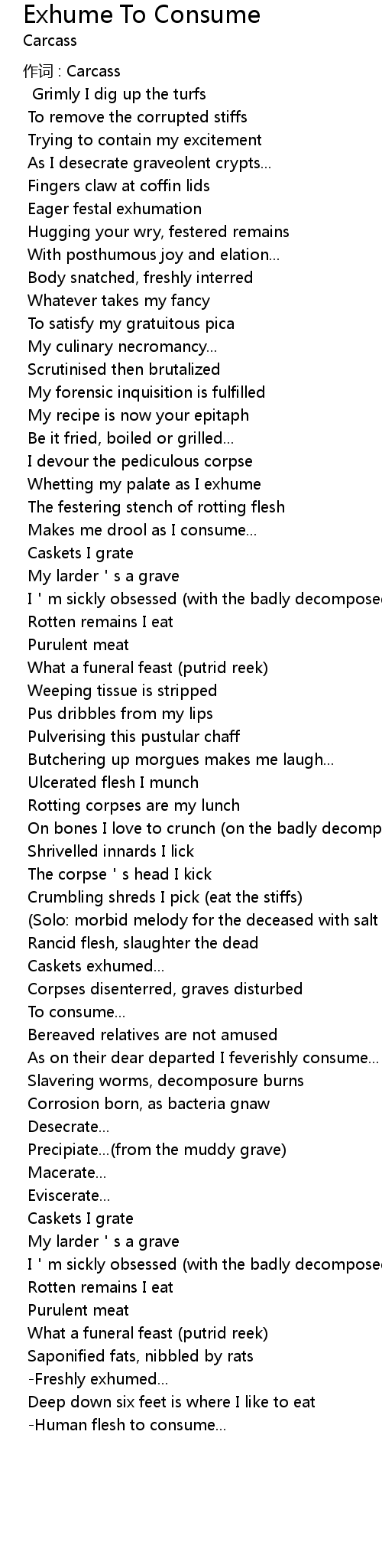 | 歌曲 | Exhume To Consume |