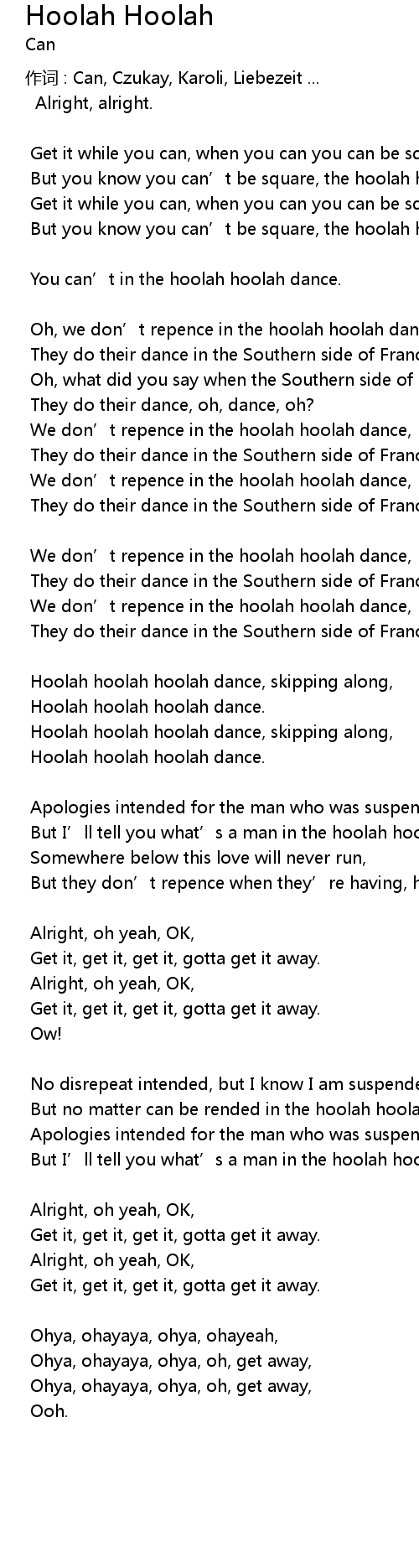 | Hoolah hoolah hoolah dance, skipping along, | |