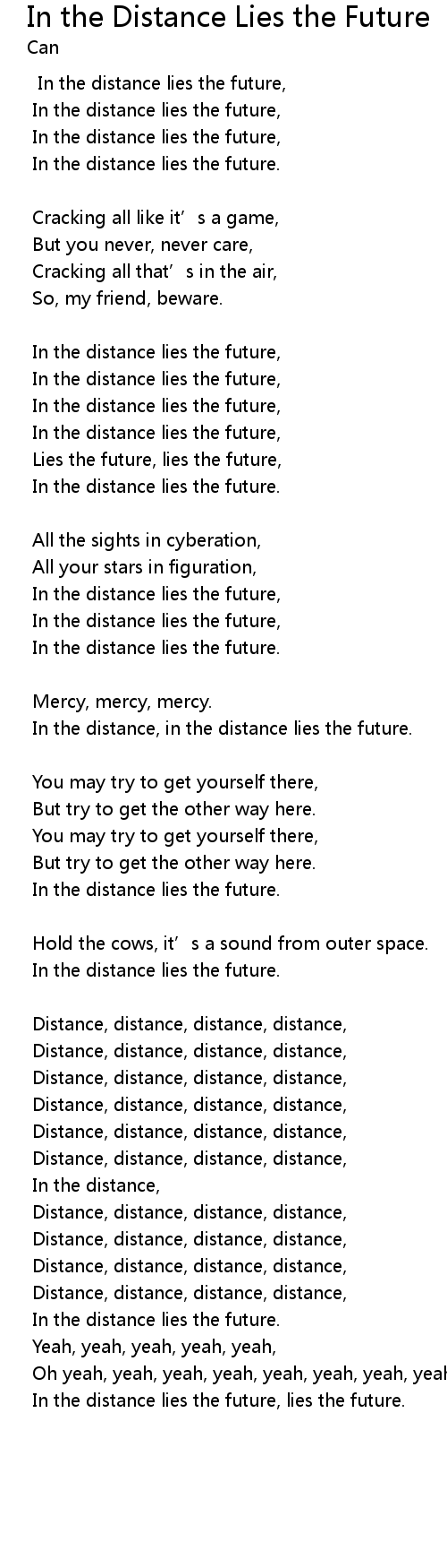 | In the distance lies the future, lies the future. |