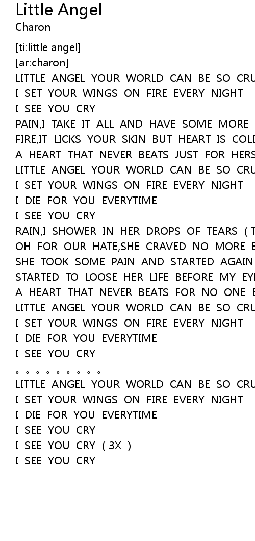 | [00:01.166] | LITTLE ANGEL YOUR WORLD CAN BE SO CRUEL |