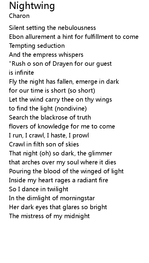 Fly the night has fallen, emerge in dark |
