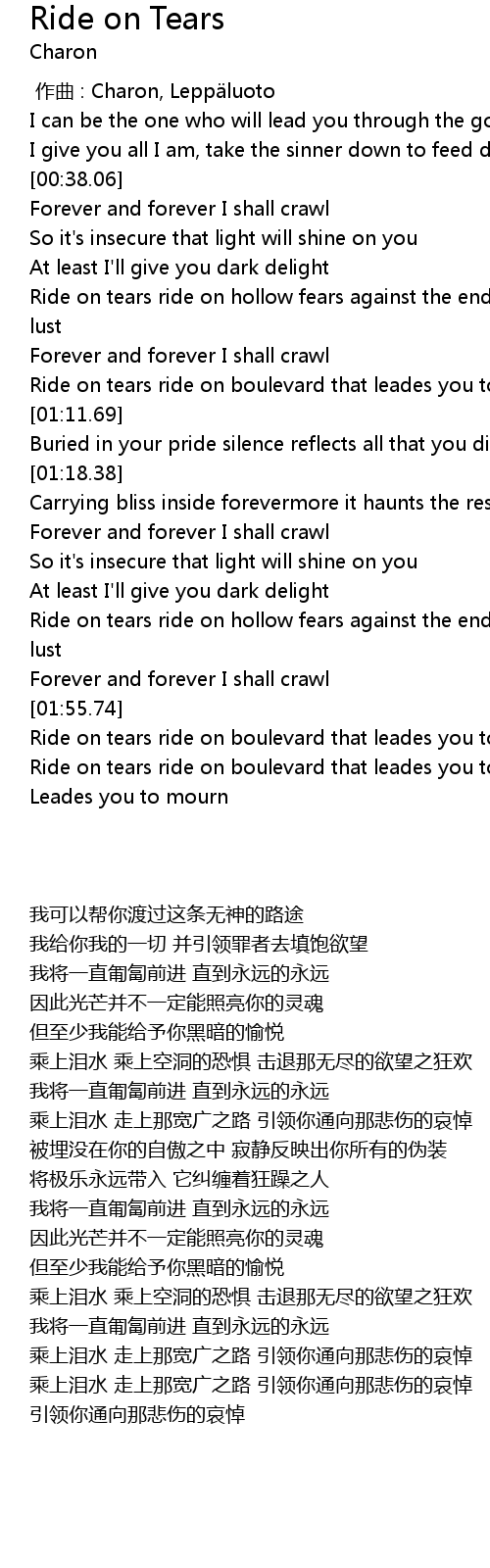 | [02:39.98] | Ride on tears ride on boulevard that leades you to mourn |