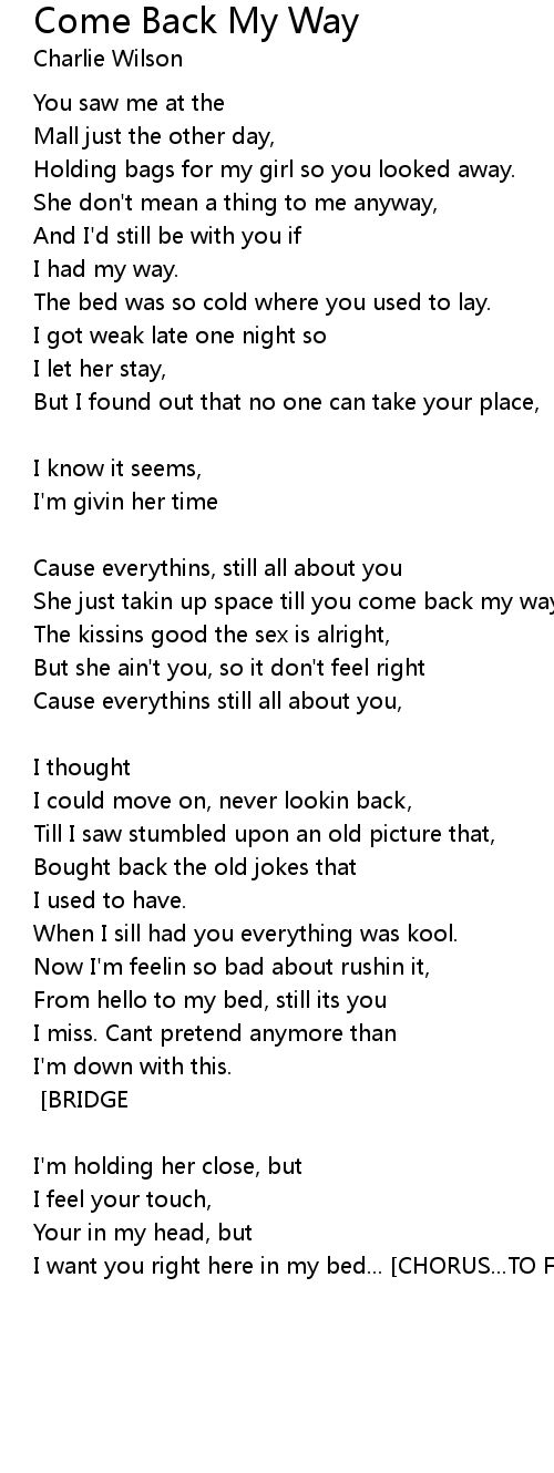 Shes just takin up space, till you come back my way [VERSE 2] |