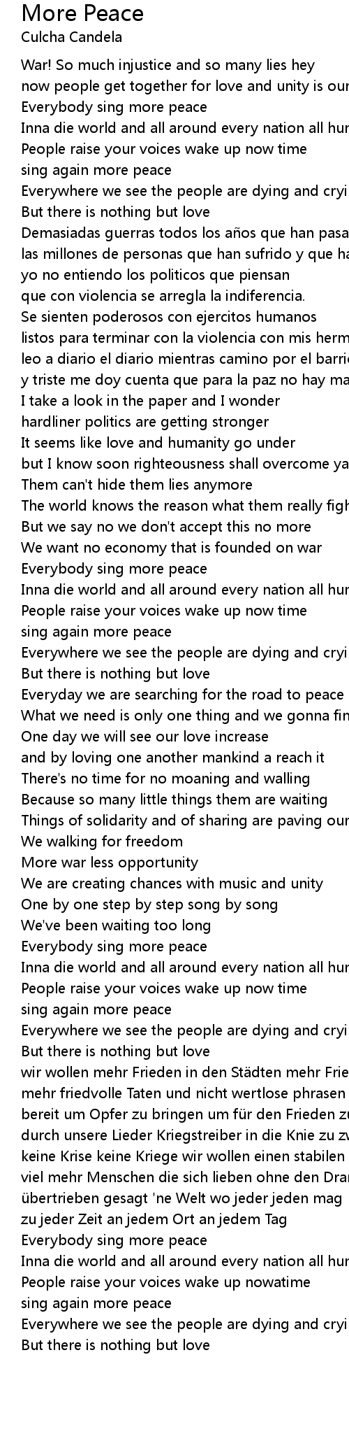 | bereit um Opfer zu bringen um fü r den Frieden zu singen | |