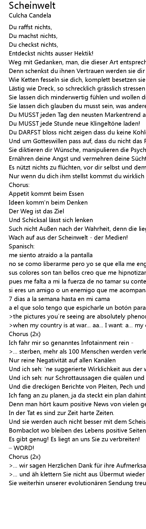 | 歌曲 | Scheinwelt |