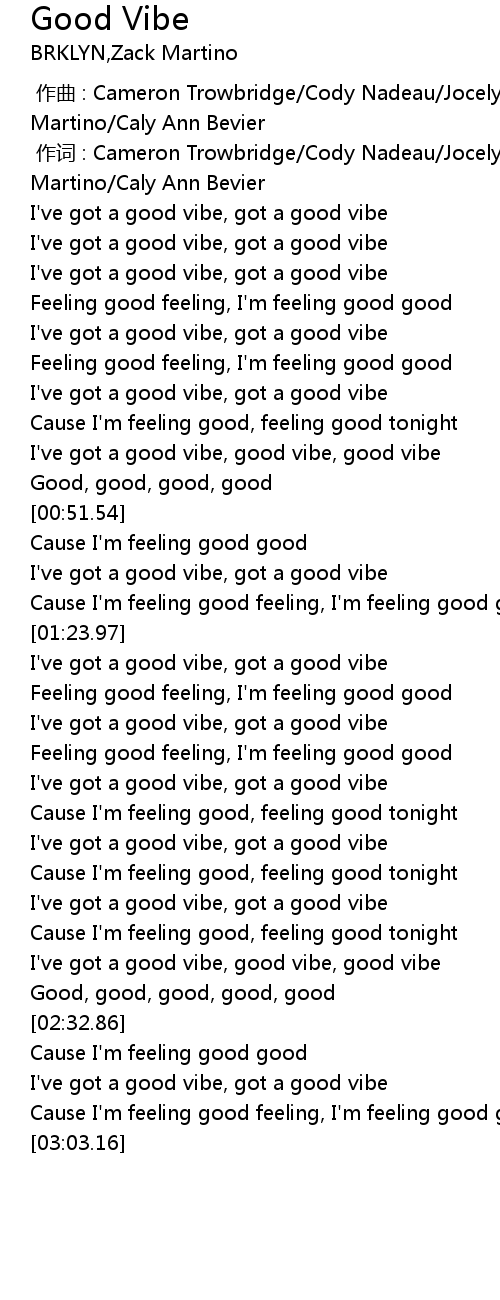 | [00:15.48] | I've got a good vibe, got a good vibe |