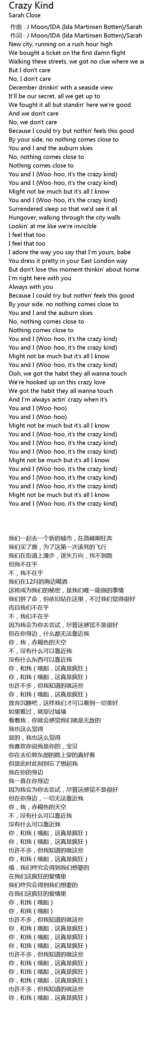 | [02:39.72] | You and I Woohoo, it' s the crazy kind |
