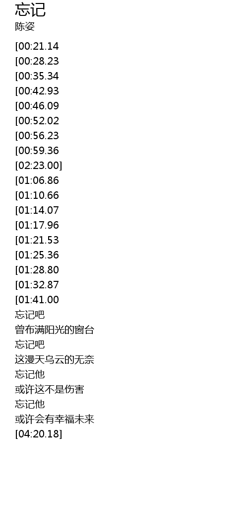 | [03:36.02][01:32.87] | 让眼泪默默离开 |
