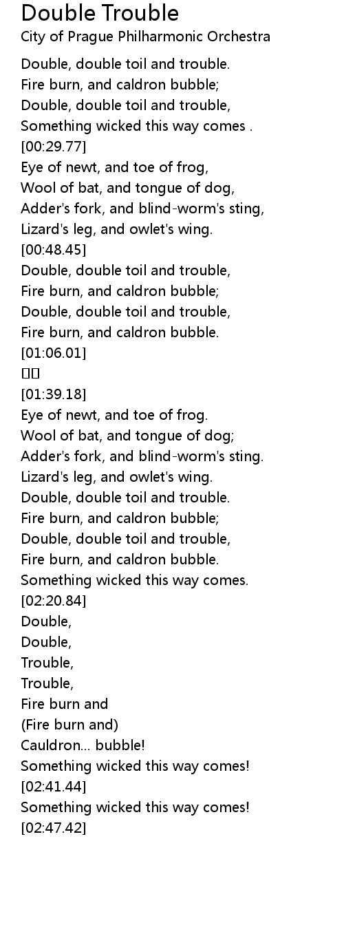 | [00:17.53] | Double, double toil and trouble. |