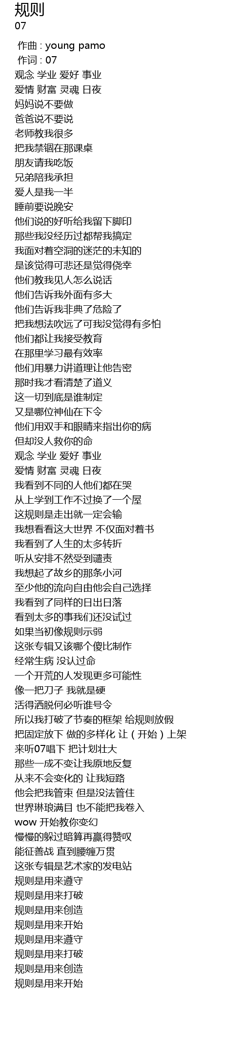 | [02:30.900] | guī zé shì yòng lái chuàng zào |