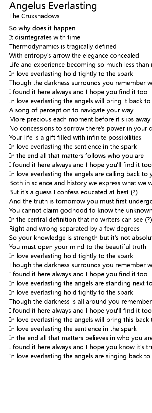 In love everlasting the angels are calling back to you |